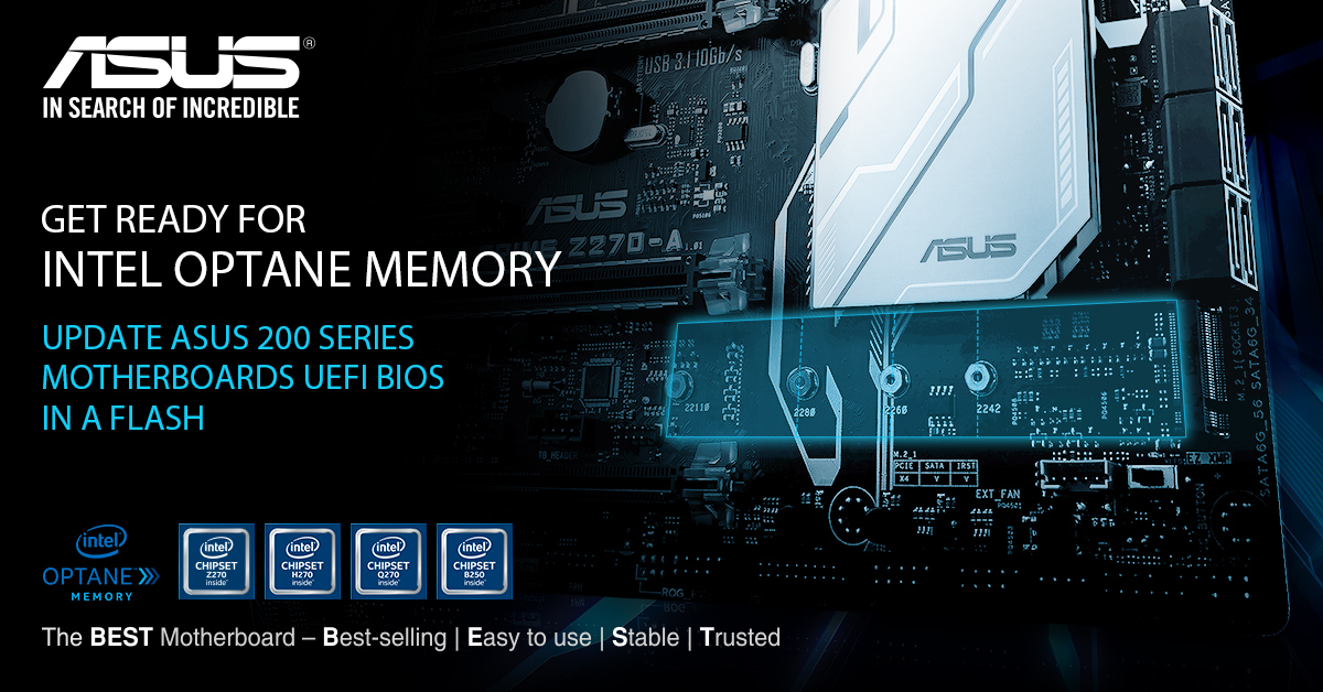 However, only some motherboards can support it and today, ASUS announced that it would be pushing out a new UEFI BIOS update to compatible ASUS 200-series motherboards. An exact list of supported motherboards will be coming soon but if you own a higher-end ASUS board, chances are you'll be getting the Optane Memory update.