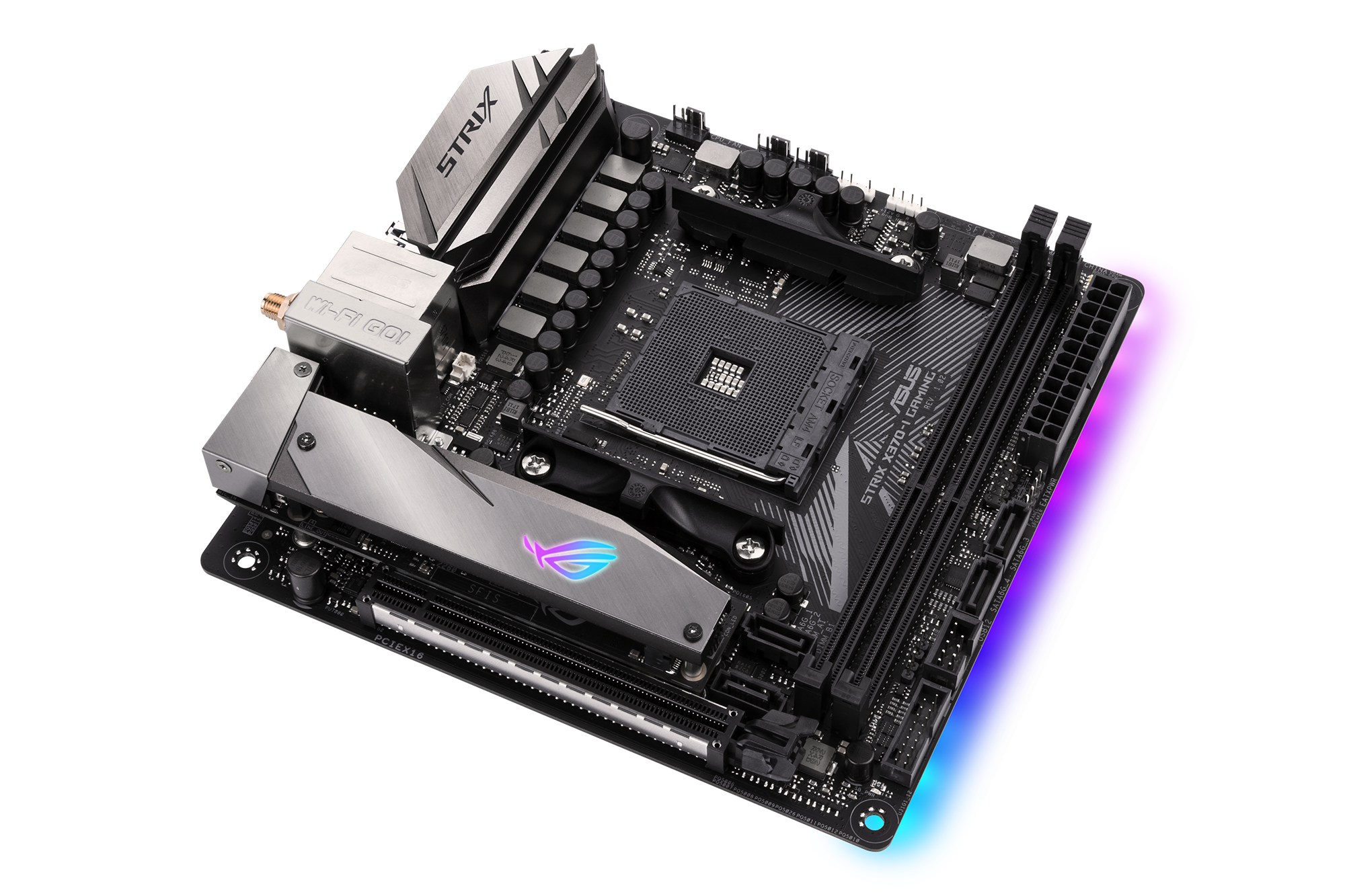 Both ROG Strix Mini-ITX boards come with the same feature set as their ATX siblings, so you won’t be losing any functionality by opting for a smaller form factor. Both boards are also ready for liquid cooling, with accessible ports for RGB lighting and a heat shield for an M.2 SSD.