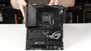 As usual, the ROG Maximus board aims to offer the pinnacle in performance and features. With that in mind, you get a ton of connectivity options, including onboard WiFi 6E, 10Gb and 2.5Gb Ethernet, PCIe 5.0 M.2 slots, USB 3.2 Gen 2×2 front panel connector with Thunderbolt 4 support and several USB Type-C connectors on the rear I/O panel.