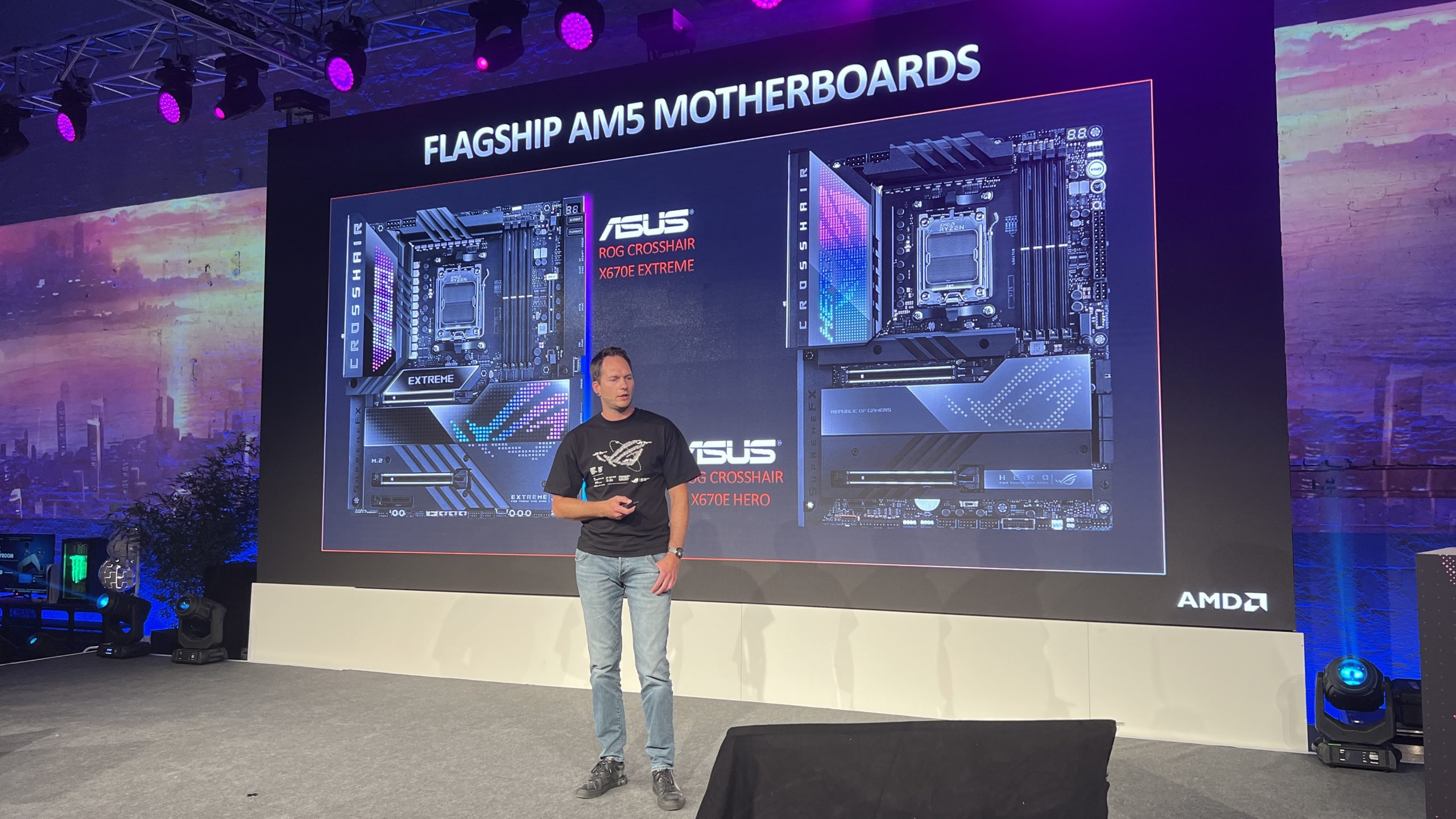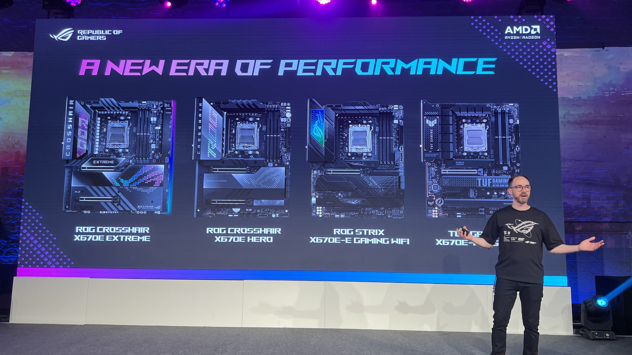 At Gamescom this week, we swung by Asus's massive ROG booth to get the low-down on upcoming hardware. AMD is currently gearing up to launch its Ryzen 7000 series processors soon, and motherboard makers are beginning to show off what they'll have available at launch. At the event, we got to see the first full set of Asus motherboards for AMD's next-gen CPUs.