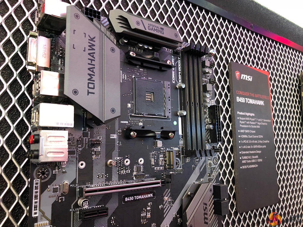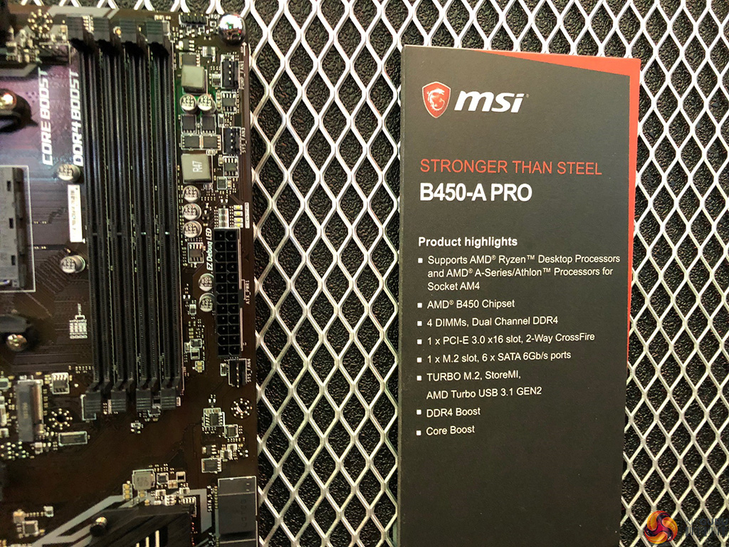On the B450 front, MSI has quite the line up at Computex this year. There is a new B450 Tomahawk with new and improved overclocking tools, a new BIOS reflash button and a $150 price tag. The B450-A Pro on the other hand comes in at $100 and is a bit more ‘standard' in terms of feature set.