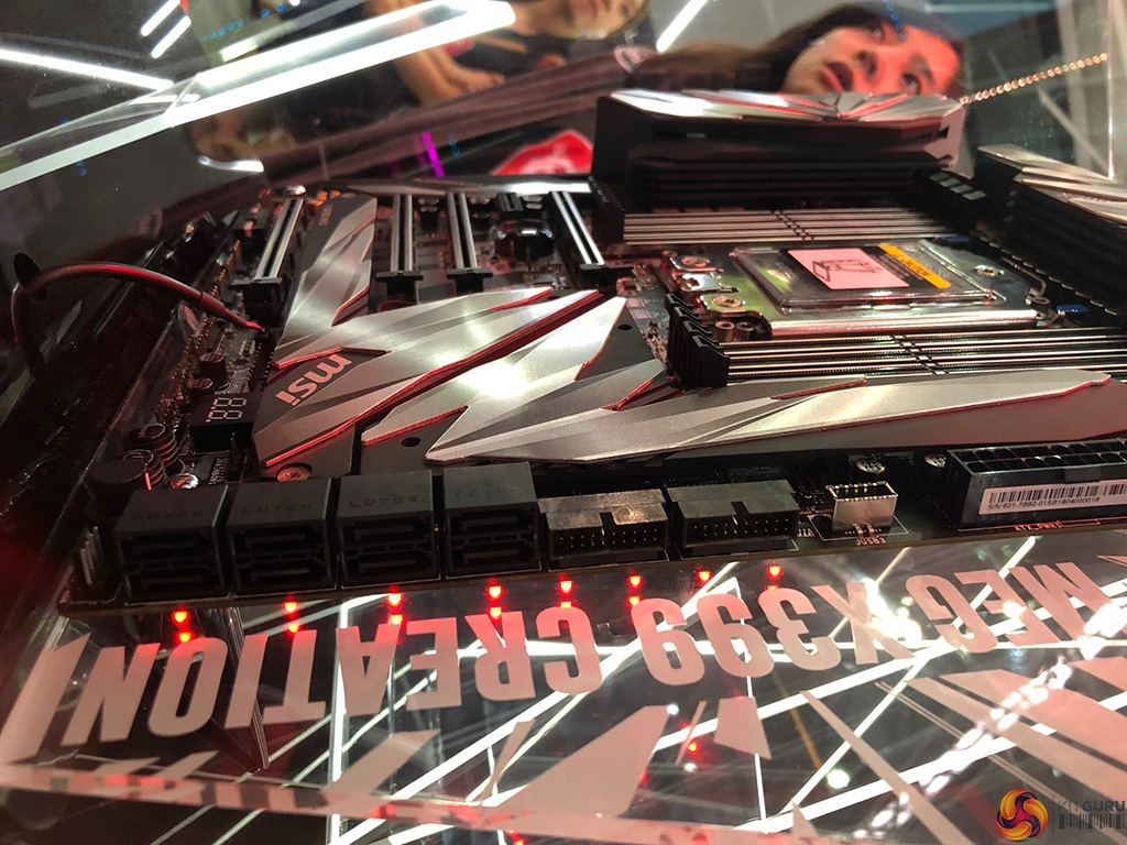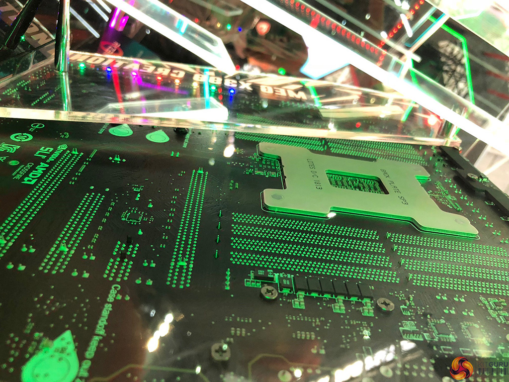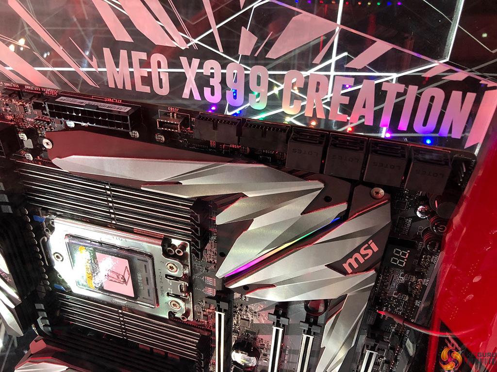 We'll start off with the new X399 prototype, which you can see in the images above. This is the new MEG X399 prototype, which should go into production towards the end of July. For this one, MSI's R&D team were given free reign, and they used that opportunity to create quite the spec-sheet. The MEG X399 has eight memory slots, four PCIe slots and a 19 phase digital power design.