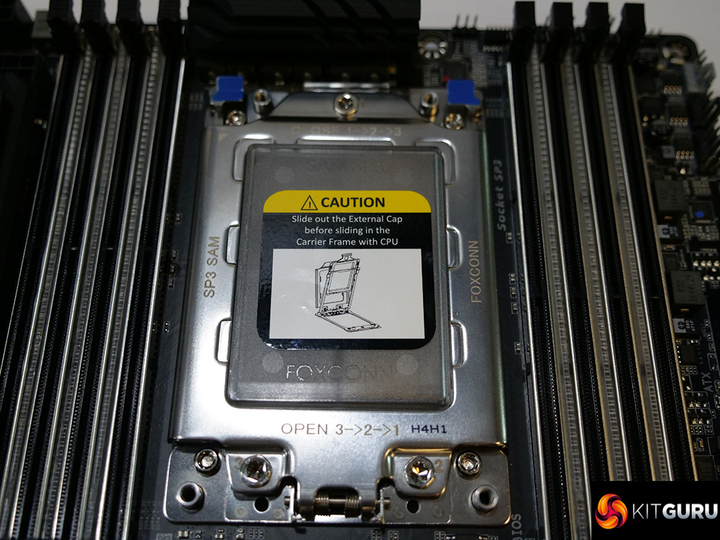 While much of the details surrounding X399 are still under NDA, we are able to show you some images of the motherboard, though the socket has been kept hidden from view. For X399, AMD's socket is officially named TP4.