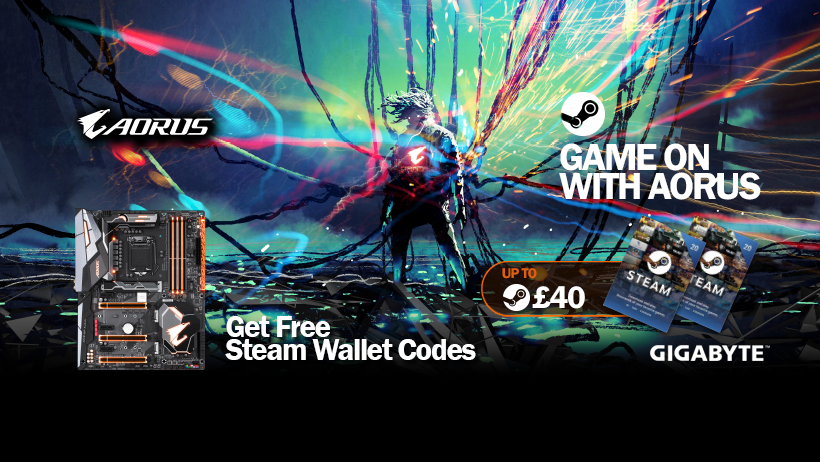 The promotion runs from the 5th of October until the 30th of November this year. UK buyers of select Z370 AORUS motherboards will either get a £20 or a £40 Steam Wallet code depending on which board they buy,