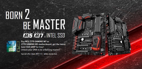 Now that Kaby Lake desktop processors are officially available at retail, it is time for motherboard makers to start pushing out their new Z270 designs. To celebrate the launch of the Z270 platform, MSI is offering up a free M.2 NVMe SSD with some of its new GAMING series motherboards to help boost your new build.