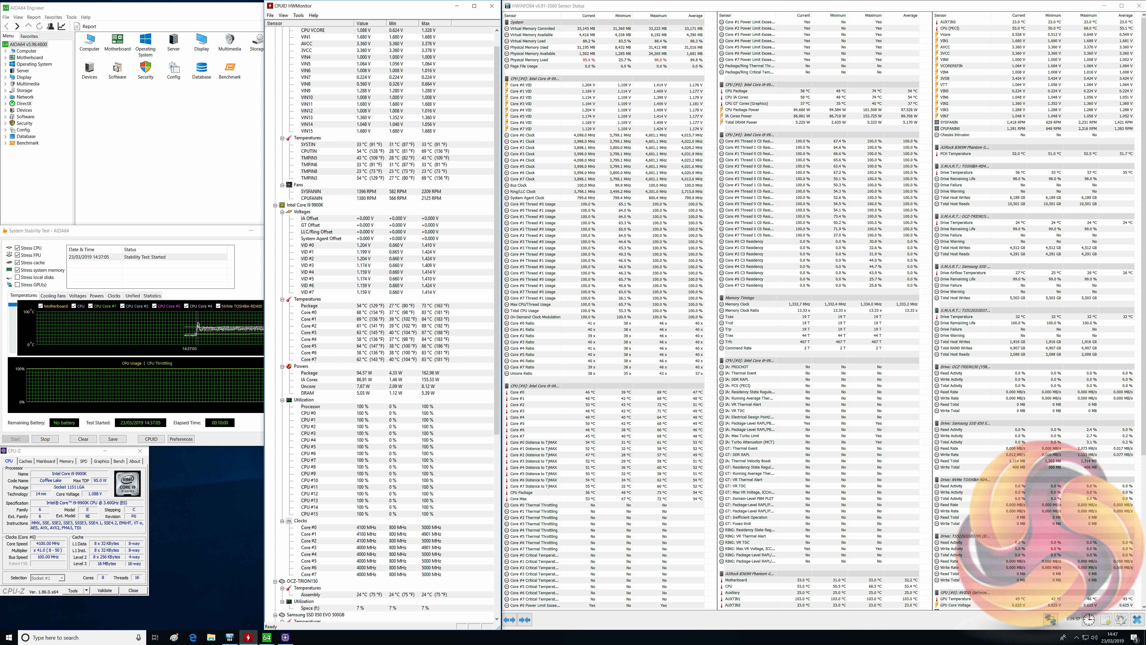 Out of the box the system will stabilise at about 4GHz long-term all-core Turbo with a VCore of about 1.09v. Reported CPU power consumption is about 97-watts.