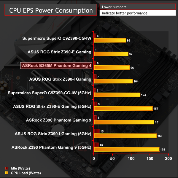 Power consumption fell in-line with expectations of a stock Intel Core i9 9900K system.