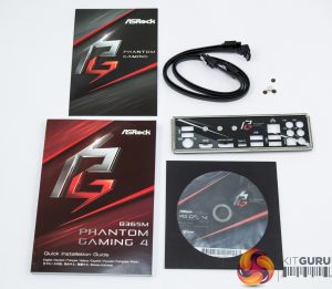 The accessory bundle is expectedly light with a manual, Phantom Gaming postcard, I/O shield, some SATA cables, M.2 mounting screws and a driver/utility DVD.