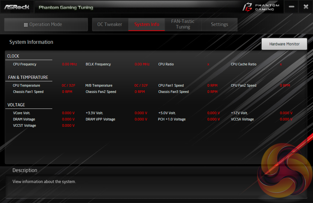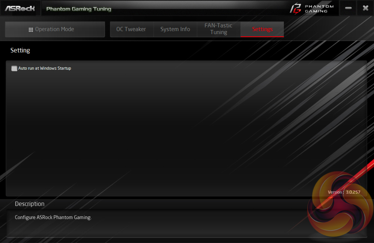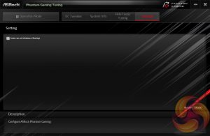ASRock Phantom Gaming Tuning, the Phantom Gaming-branded equivalent of A-Tuning, is ASRock’s equivalent to ASUS AI Suite, Gigabyte EasyTune and MSI Command Centre. This software allows you to set power profiles, change performance parameters on the fly (OTF) and tune the fan speeds with the ASRock Fan-Tastic tuning. It’s a reasonably well polished piece of software, is light on system resources and not very intrusive.