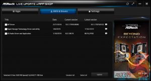 ASRock’s App Shop provides the dual role of serving out ASRock’s own software and approved third party software (some of dubious value), but also includes a MSI Live Update-style function which scans for certain BIOS and driver versions and informs the user when a newer version is available.