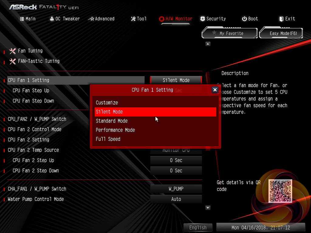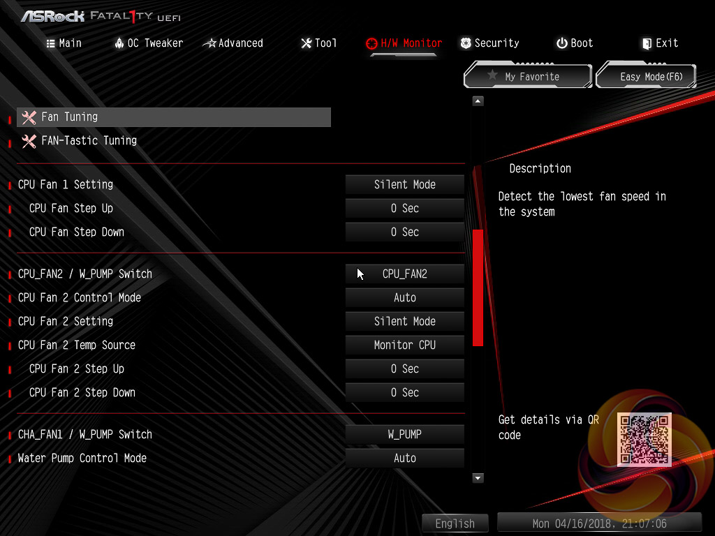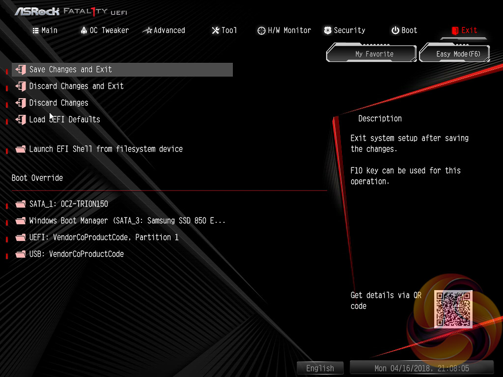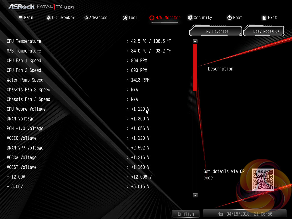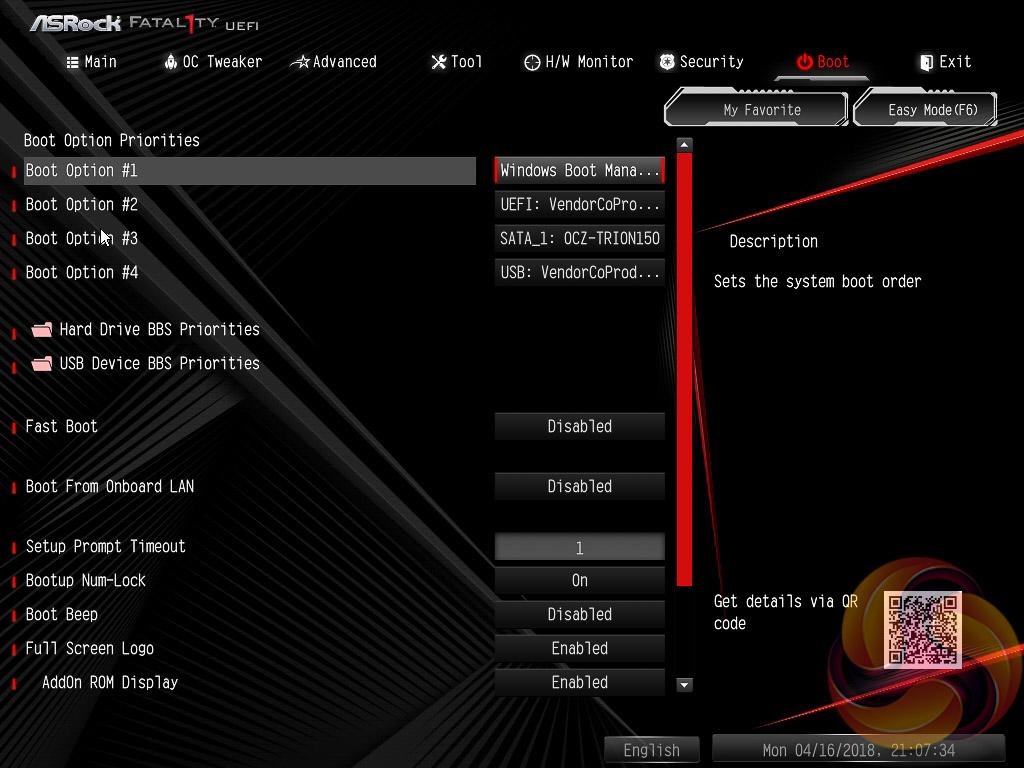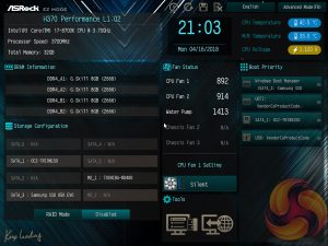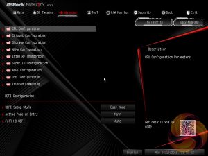 Like all motherboard vendors the ASRock UEFI offers an “EZ MODE” option intended to provide a quick summary of commonly accessed UEFI options like the boot order and fan speeds as well as system monitoring information. This splash screen, for some reason, is not Fata1lty-skinned like the rest of the UEFI environment.
