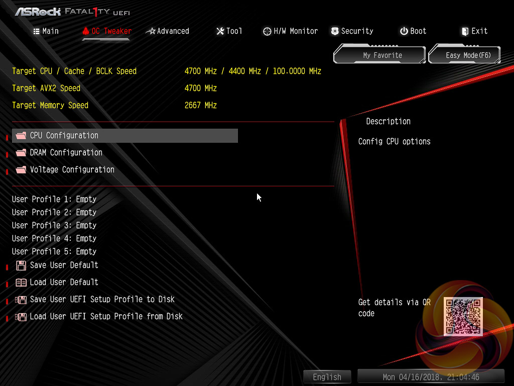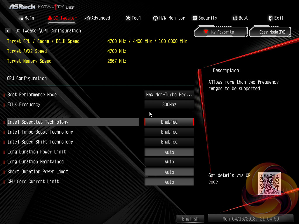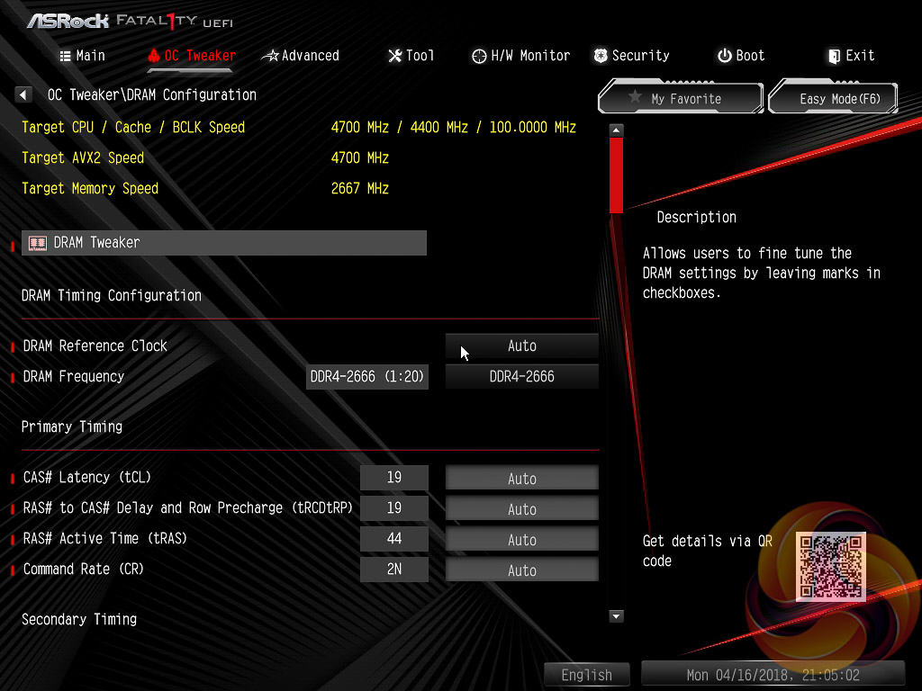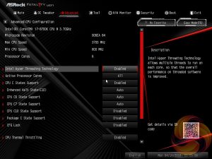 OC Tweaker is the primary section of the UEFI environment for altering settings relating to the CPU, DRAM and Voltage. However, there is no overclocking on H370 so perhaps ASRock needs to drop the term “OC” from the title. Or perhaps the fact you could overclock a DDR4-2400 memory kit to DDR4-2666 is why it still keeps its OC title? A dubious linkage at best.