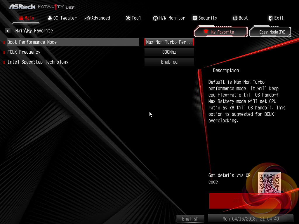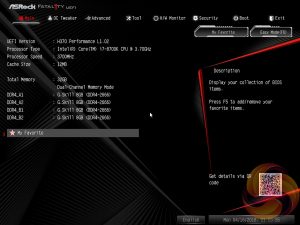 Pressing F6 takes you into the Advanced mode which starts with the Main page that overviews the UEFI version, installed processor and DRAM information. The My Favorite tab contains all recently accessed UEFI settings.