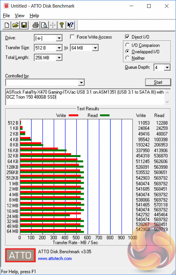 For SATA 6Gbps testing we use an OCZ Trion 150 480GB SSD.