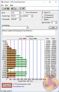 The ATTO disk benchmark is a Windows-based utility for testing storage performance of any storage drive or controller. We use the default benchmark setup.
