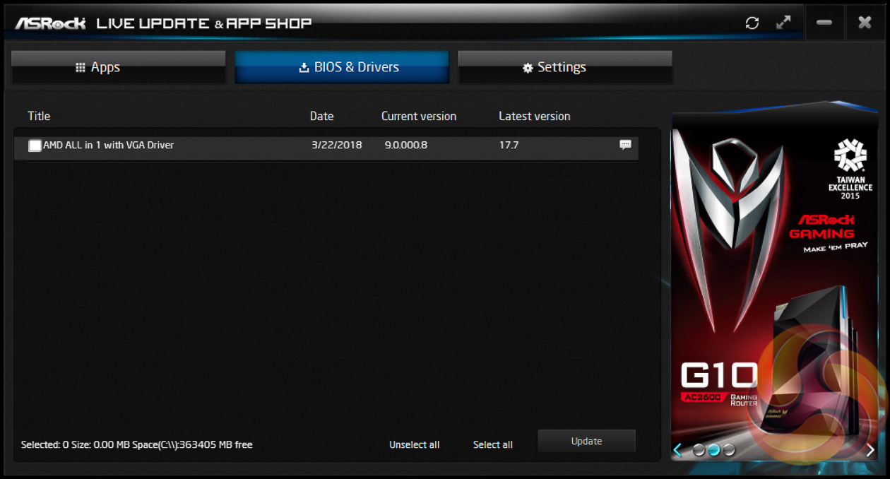 ASRock’s App Shop provides the dual role of serving out ASRock’s own software and approved third party software (some of dubious value), but also includes a MSI Live Update-style function which scans for certain BIOS and driver versions and informs the user when a newer version is available. It’s reasonably useful for both of its provided functions and isn’t too intrusive, but does pop up the occasional notification in Windows 10.
