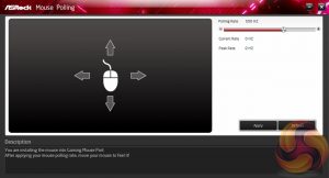 When a mouse is plugged into the Fatal1ty mouse port its polling rate can be manually adjusted up to 1000Hz in the ASRock Mouse Polling software. In many cases gaming mice have their own software for polling rate adjustments but where they do not this offers a functional solution.