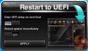 Restart to UEFI does exactly what it says on the tin and is handy if you’re not quite quick enough on the F2 or Delete keys.
