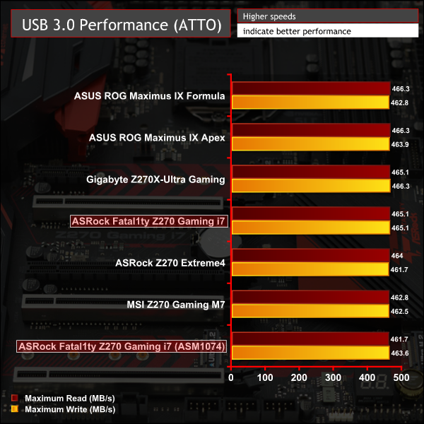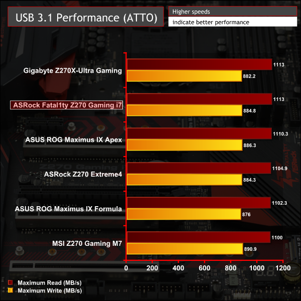 ASRock's Fatal1ty Z270 Professional Gaming i7 scored Excellent in 7 out of 8 categories and Good in the eight category for an overall rating of Very Good. Only the two ASUS motherboards performed better than it in all categories while the Gaming i7 traded places in the rankings with the Gigabyte, MSI and ASRock boards across the various tests.