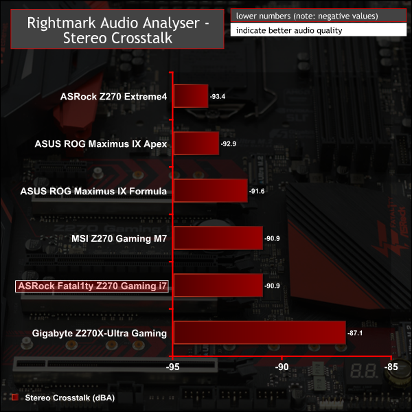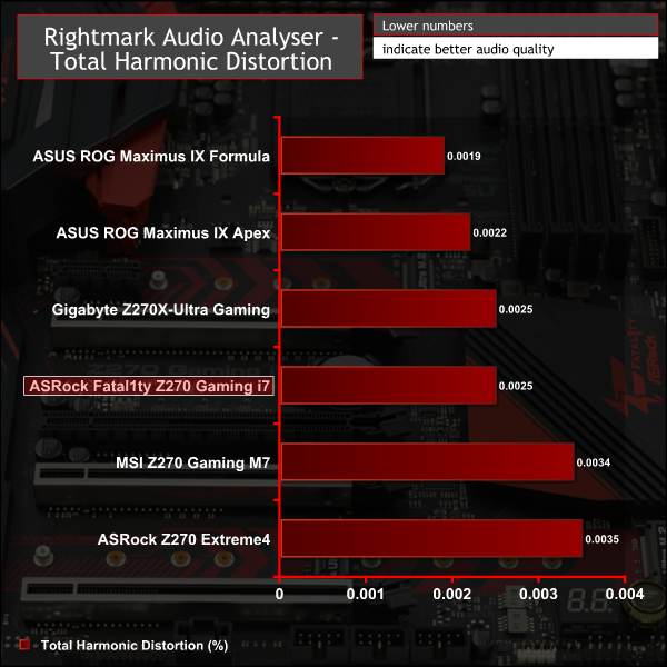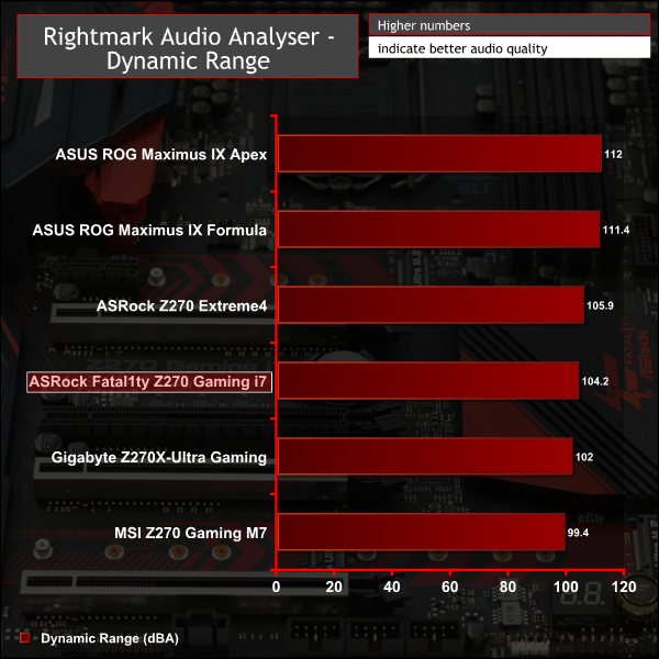 Rightmark Audio Analyser is a freeware benchmarking utility designed to objectively test the performance characteristics of audio solutions. We setup a line-in line-out loop and execute the record/playback test before generating the results report you see below. A sampling mode of 24-bit, 192 kHz was tested.