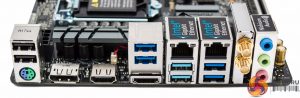 The rear I/O is well equipped, making this motherboard look like an ideal candidate for a Home Theatre PC. There's dual HDMI, DisplayPort, dual Intel Gigabit and eight USB ports in total.