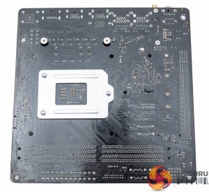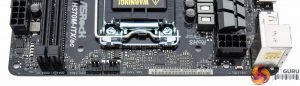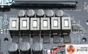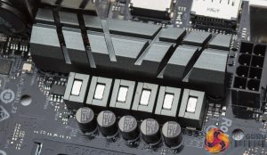 ASRock is using what it calls a “Dual-Stack” design for the MOSFETs. In other words, each MOSFET IC contains one high-side and one low-side MOSFET, to save space. The specific brand and model used is the sinopower SM7341.