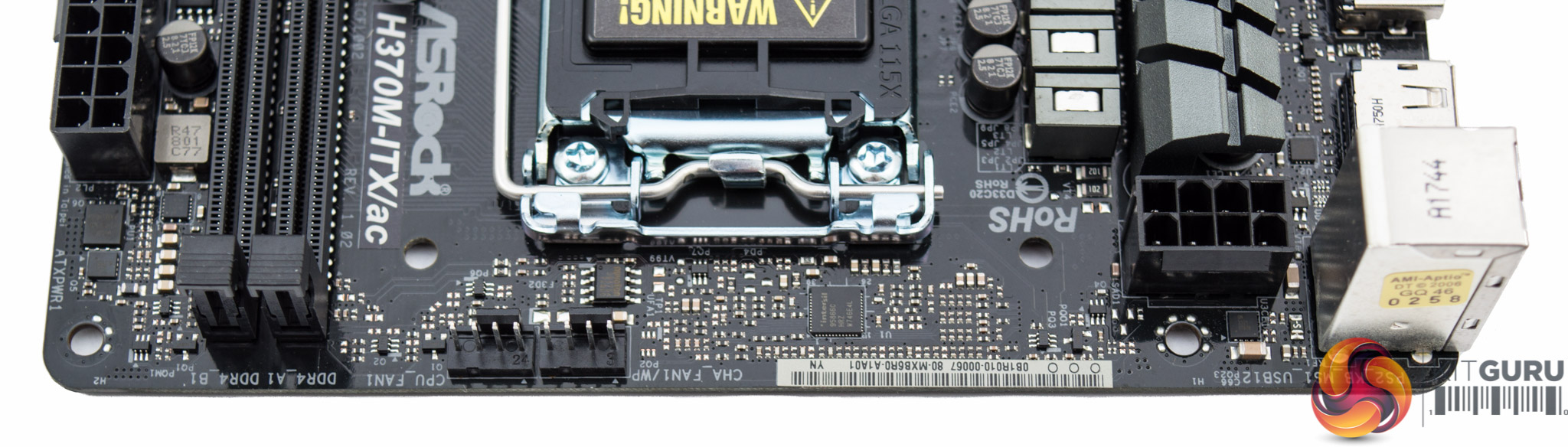 The CPU VRM heatsink is very compact in size and therefore not suitable for any extended high-current system loading. Thankfully, the H370 chipset doesn't allow for CPU or memory overclocking so it seems unlikely the CPU VRM will ever be under significant strain.