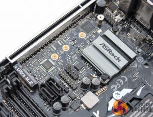 The M.2 slot sits in a congested centre section of the motherboard that is busy with various controller ICs and the chipset heatsink. Annoyingly, the SATA port that shares SATA bandwidth with the M.2 slot (SATA3_1, when using a M.2 SATA device) is not in this section of the motherboard. It would seem sensible that the least accessible SATA port (SATA3_4 or SATA3_5) should be the only SATA port at risk of deactivation, clearly ASRock didn't agree.