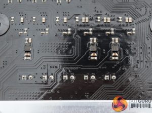 There appear to be another three drivers (likely Intersil ISL6608) on the underside of the motherboard taking the total number of drivers, including integrated ones, to six which matches the total number of phases.
