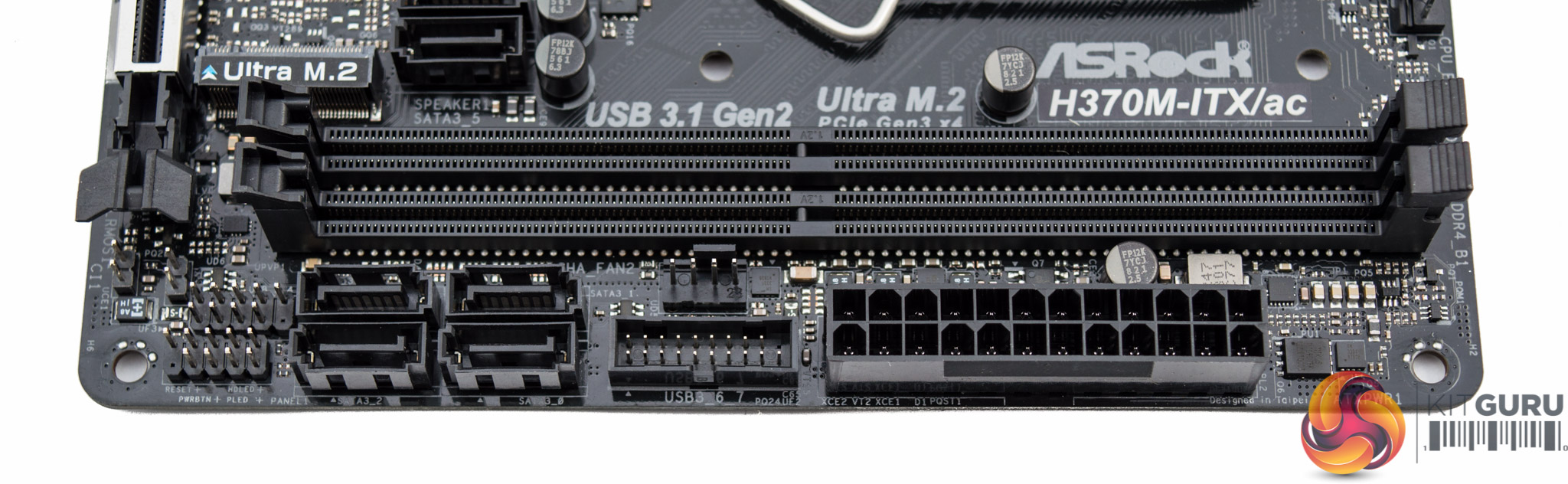 The ASRock H370M-ITX/ac is a plain motherboard as the space constraints of the mini-ITX form factor do not leave much room for customisation. Both the chipset and CPU VRM heatsinks are compact in size with a grey colour, while the entire board uses a black colour scheme. There's no onboard RGB lighting to speak of, neither are there any expandable RGB headers to add some later on.