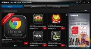 ASRock’s App Shop provides the dual role of serving out ASRock’s own software and approved third party software (some of which appears to be of dubious value), but also includes a MSI Live Update-style function which scans for certain BIOS and driver versions and informs the user when a newer version is available. It’s reasonably useful for both of its provided functions and isn’t too intrusive, but does pop up the occasional notification in Windows 10.