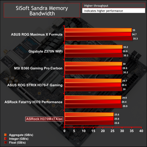 Memory performance takes a hit compared to other H370 motherboards since memory throughput is linked to CPU frequency which is lower due to a conservative UEFI power limit.