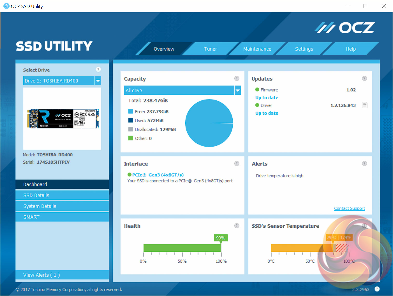 For M.2 testing we use a Toshiba OCZ RD400 256GB M.2 PCIe NVMe SSD.