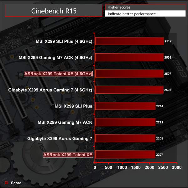 Overclocking performance was similar to all other X299 motherboards though we found the ASRock board needed less voltage, at 1.175 volts instead of 1.2 volts, to achieve 4.6GHz in a stable manner.