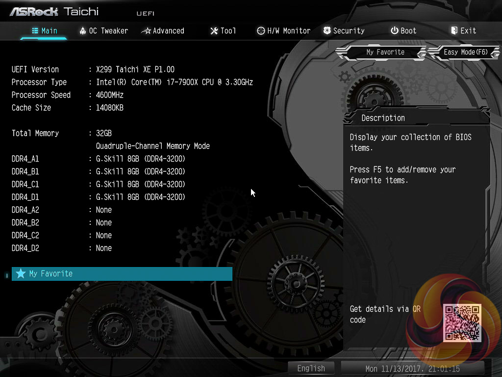 Pressing F6 takes you into the Advanced mode which starts with the Main page that overviews the UEFI version, installed processor and DRAM information.