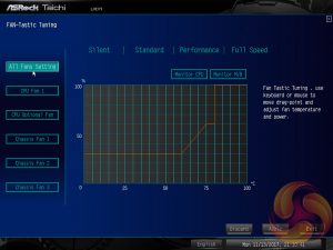 Further fan tuning can be done by first running the “Fan Tuning” wizard to calculate the full fan speed range of each attached fan (minimum and maximum speeds in RPM). Then from within the FAN-Tastic tuning window customised profiles can be set using the fan speed graph and the mouse to drag-and-drop the curve/line.