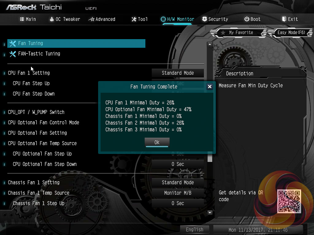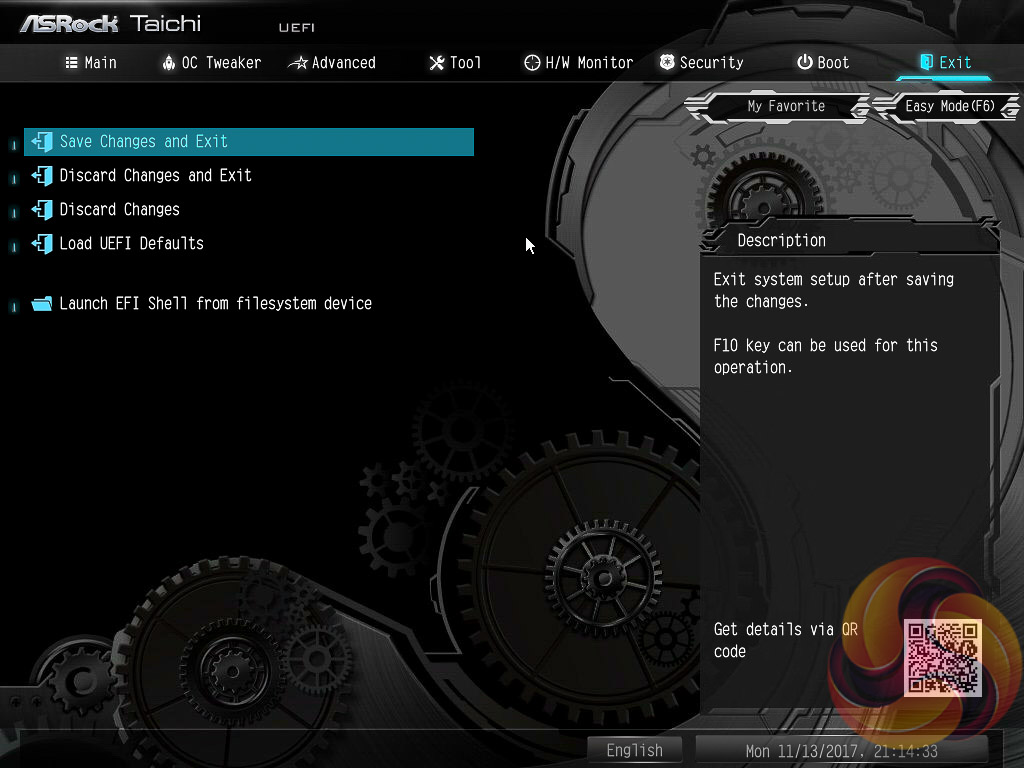 The Tool tab holds the Instant Flash utility which is beautifully simple. Attach a USB device, pick the update file and update, or update automatically from the internet. It seemed on this motherboard only one of the Ethernet ports was configured to work with Internet flash, the Intel I211AT nearest the BIOS flashback button. However, it connected up to the internet easily and worked a treat to run the update.