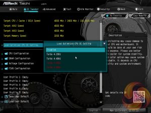 The OC Tweaker section is reasonably well equipped and granular but we find the splitting off into “FIVR” and “Voltage” unnecessarily separates clearly related UEFI options. What ASRock is trying to do is reasonably sensible and by packing related options into individual sections a neat layout does ensue, it also enables ASRock to bundle UEFI profiles into the OC Tweaker landing page so users are more likely to take note of this capability.
