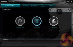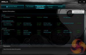 A-Tuning, ASRock’s equivalent to ASUS AI Suite, Gigabyte EasyTune and MSI Command Centre, allows you to overclock on-the-fly and tune the fan speeds with the ASRock FAN-Tastic tuning. It’s a reasonably well polished piece of software, is light on system resources and not very intrusive.
