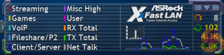 ASRock has been less active in its promotion of XFast LAN software which is effectively a re-badged cFos traffic shaping software with very little amendment. It's fashionable to have this kind of packet prioritisation software – ASUS has GameFirst IV and MSI has Network Manager which both vendors market a fair amount. However, ASRock and Gigabyte hardly bother and we think it's the best approach.