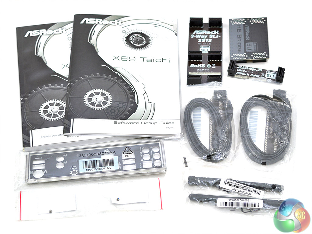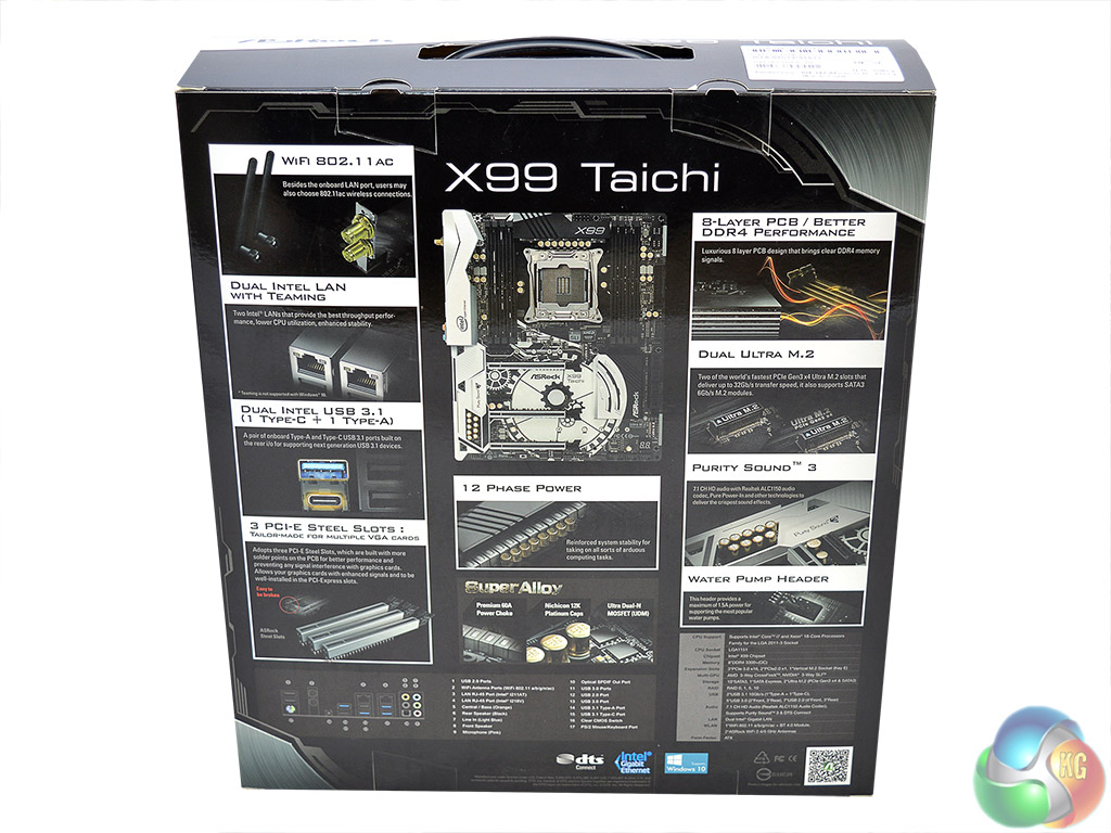 ASRock uses a new theme with the X99 Taichi – a black and white colour scheme and a series of interfacing cogs and machine-like parts. This theme translates through onto the product as well as being present on the packaging documentation and inside the UEFI.