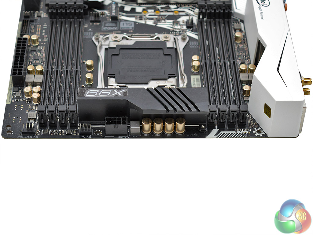 The CPU socket has a 12 phase hybrid-digital “Digi power” VRM solution and draws in power from a single CPU EPS 8 pin connection.