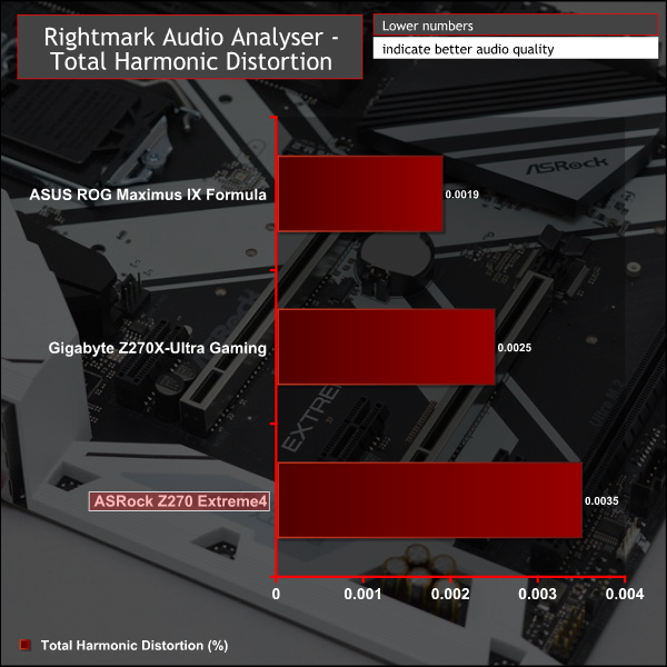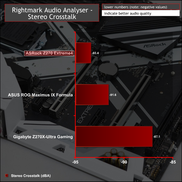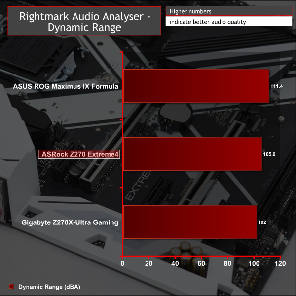 Audio performance is roughly in between the ASUS and Gigabyte boards in respect to the results recorded, but all three boards returned Very Good overall results from the Right Mark Audio Analyser test.