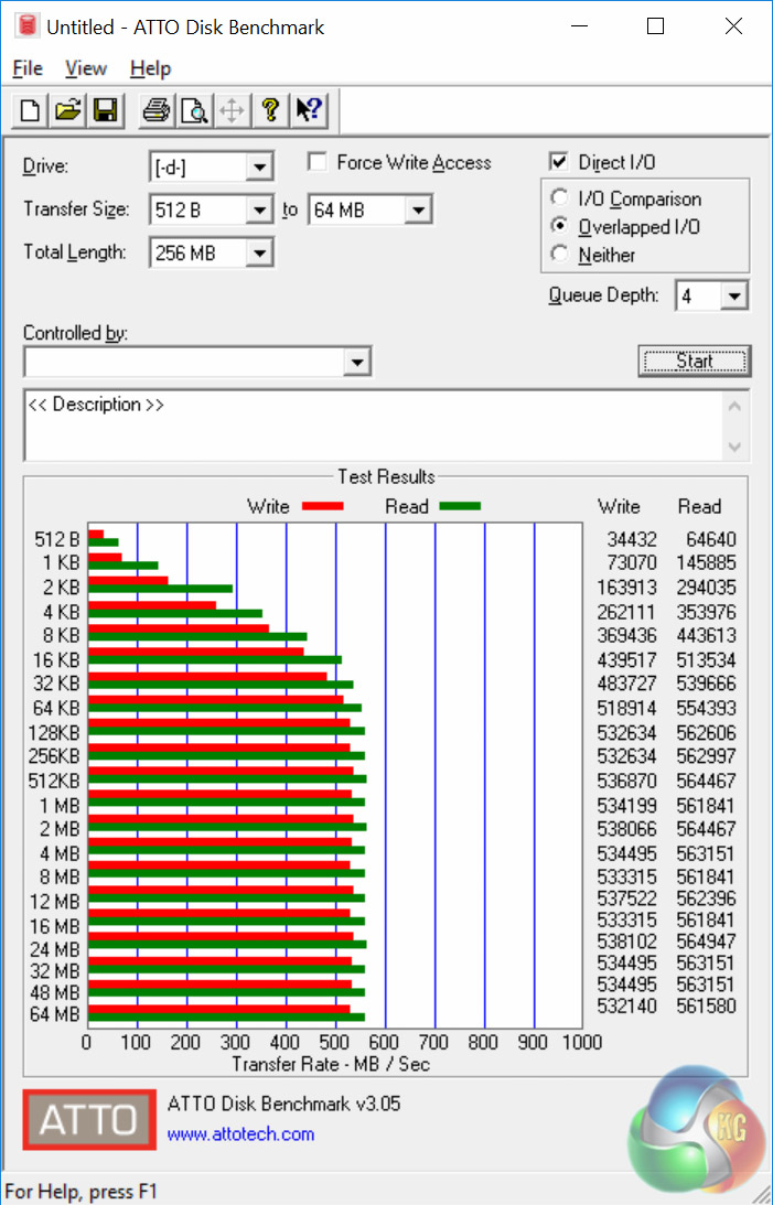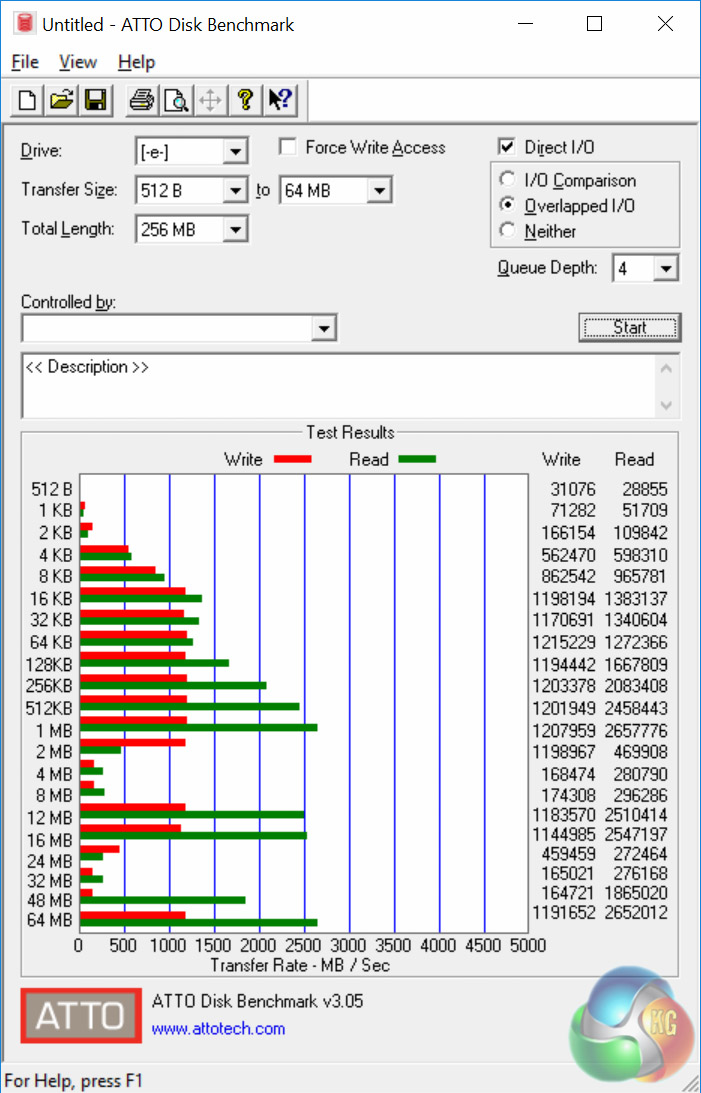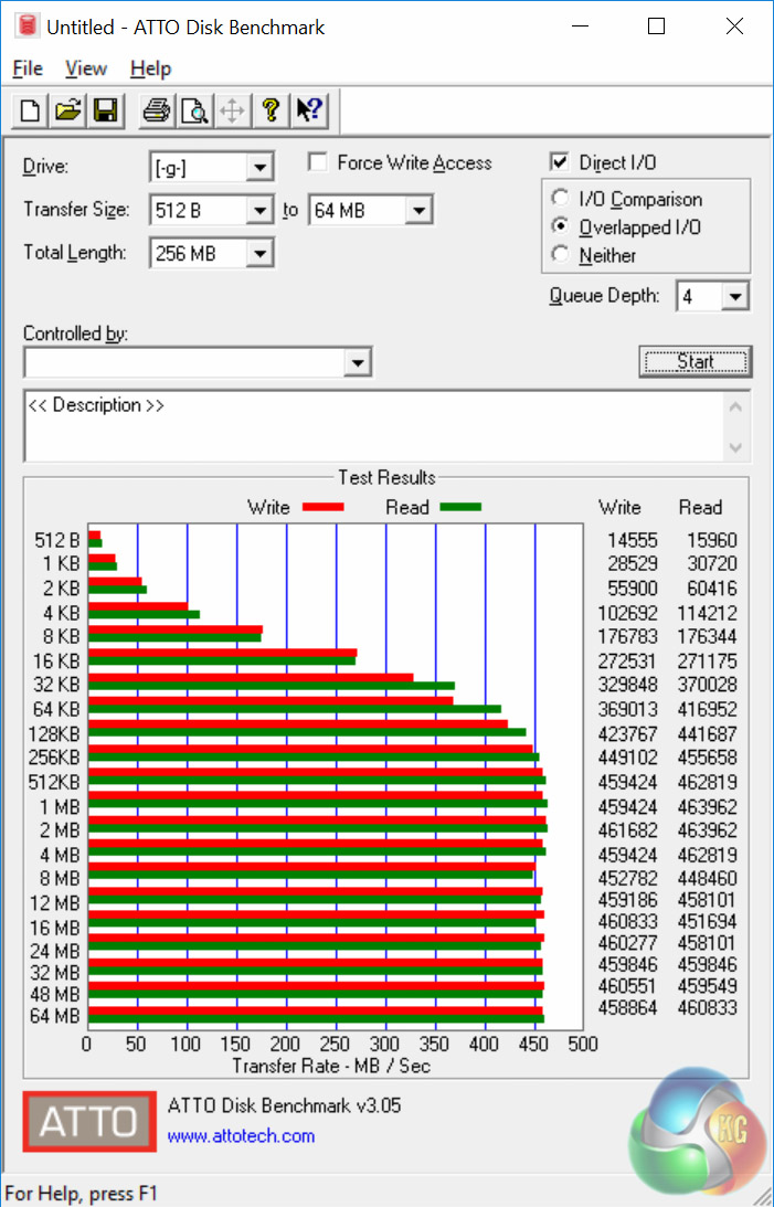 The ATTO disk benchmark is a Windows-based utility for testing storage performance of any storage drive or controller. We use the default benchmark setup.