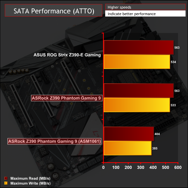 SATA III performance is as we'd expect, the Z390 chipset is faster than the ASM1061 controller ports but this has always been the case in previous chipsets.
