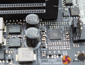The CPU PWM Controller is the Infineon IR35201 controller. It supports up to 8+0 or 6+2 phases but in this particular implementation it runs as 5+2 phases actual, 10+2 phases virtual.