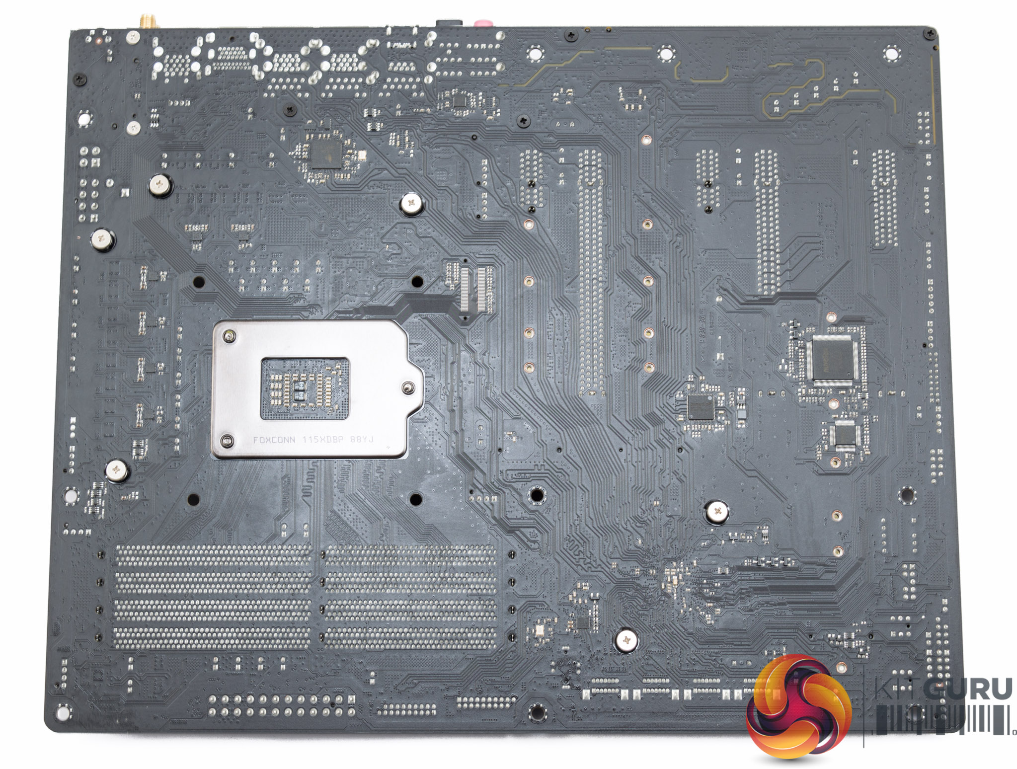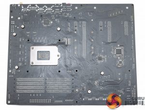 Underneath the motherboard there are only cross-head screws which is helpful for maintenance and modification. It's possible to see some of the additional ICs and controllers including the RTL8125AG 2.5 Gigabit LAN chip, six IR3598s under the CPU VRM and other ICs on USB or I/O duties, such as the USB 3.1 ASM1543 redriver.