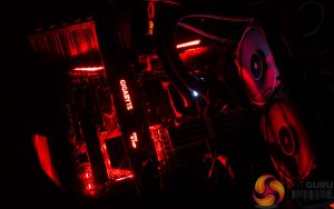 This motherboard has three main onboard RGB lighting zones, there is an LED strip inside the rear I/O cover, the audio cover and within the chipset heatsink. There are three expandable LED headers, all located after the last PCIe lane, for further customisation.