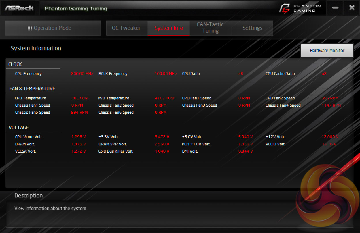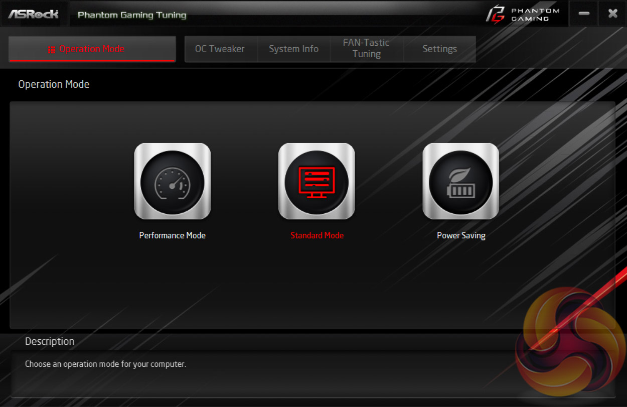ASRock Phantom Gaming Tuning, the Phantom Gaming-branded equivalent of A-Tuning, is ASRock’s equivalent to ASUS AI Suite, Gigabyte EasyTune and MSI Command Centre. This software allows you to set power profiles, overclock on the fly (OTF) and tune the fan speeds with the ASRock Fan-Tastic tuning. It’s a reasonably well polished piece of software, is light on system resources and not very intrusive.