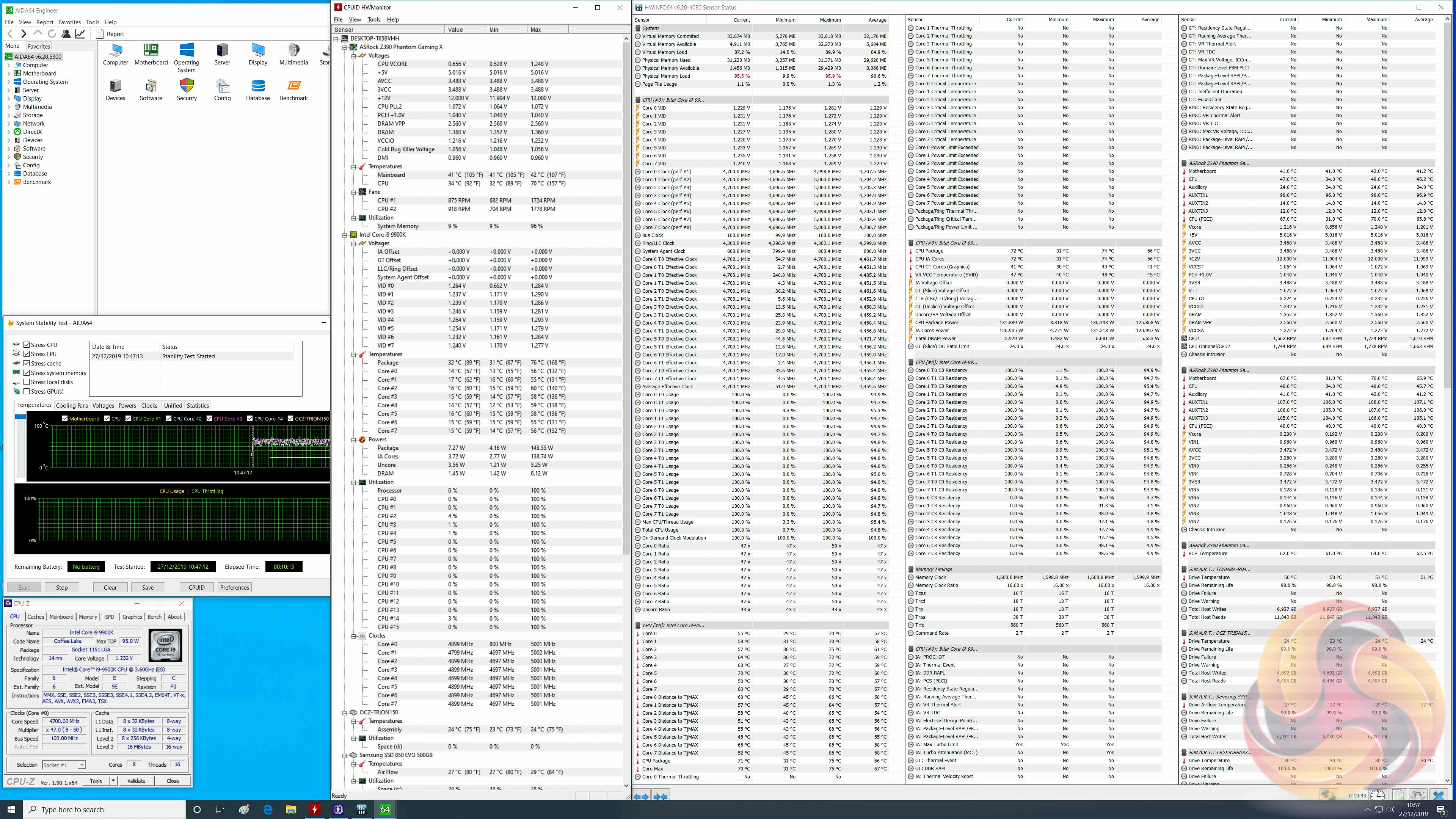 The ASRock Z390 Phantom 9 had two dedicated VRM sensors on a separate IC to measure temperature of the VRMs. For whatever reasons, either the chip was removed or HWiNFO is no longer able to read these sensors, this same information was not available on the “upgraded” Z390 Phantom Gaming X, which we found disappointing.